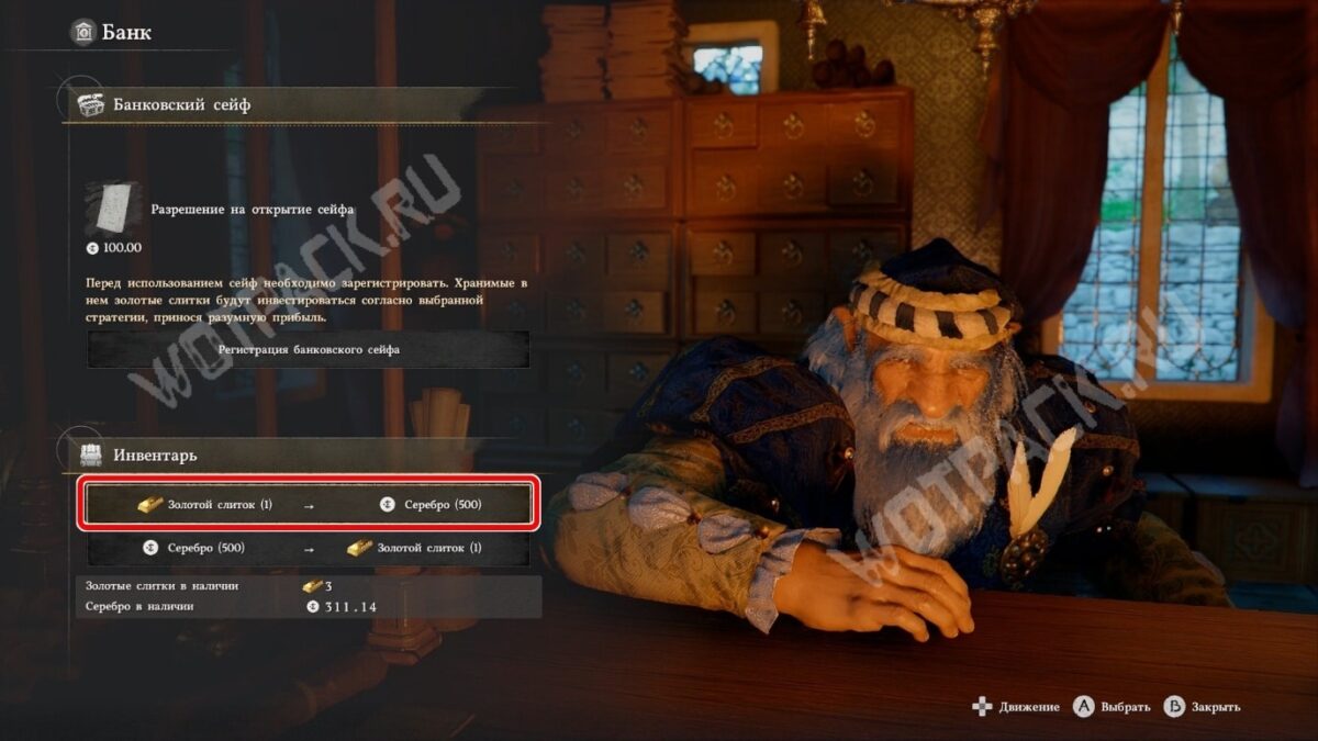 Стандартная цена на бруски золота — всего 190 монет. Однако не спешите продавать их первому встречному торговцу. Если отнесёте драгоценность в банк, сможете выручить за неё 500 серебра.