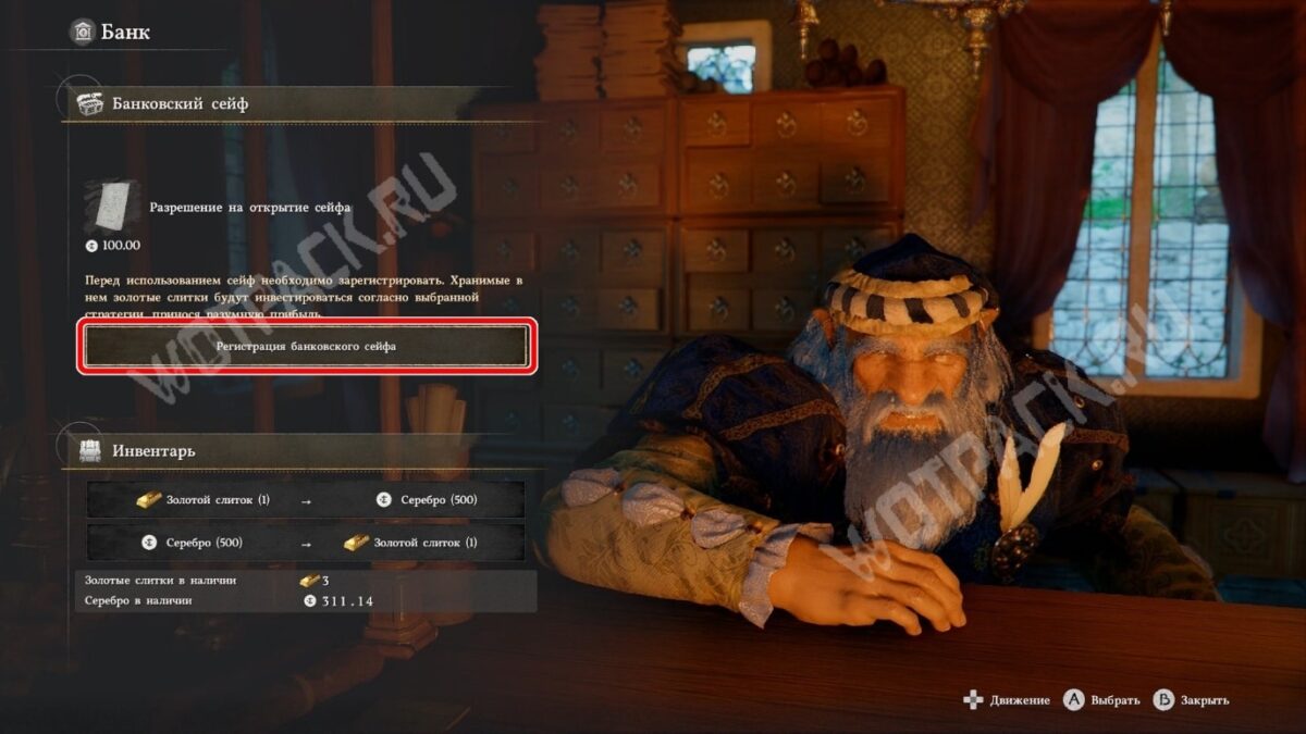 - Зарегистрируйте банковский сейф — стоит 100 серебра.