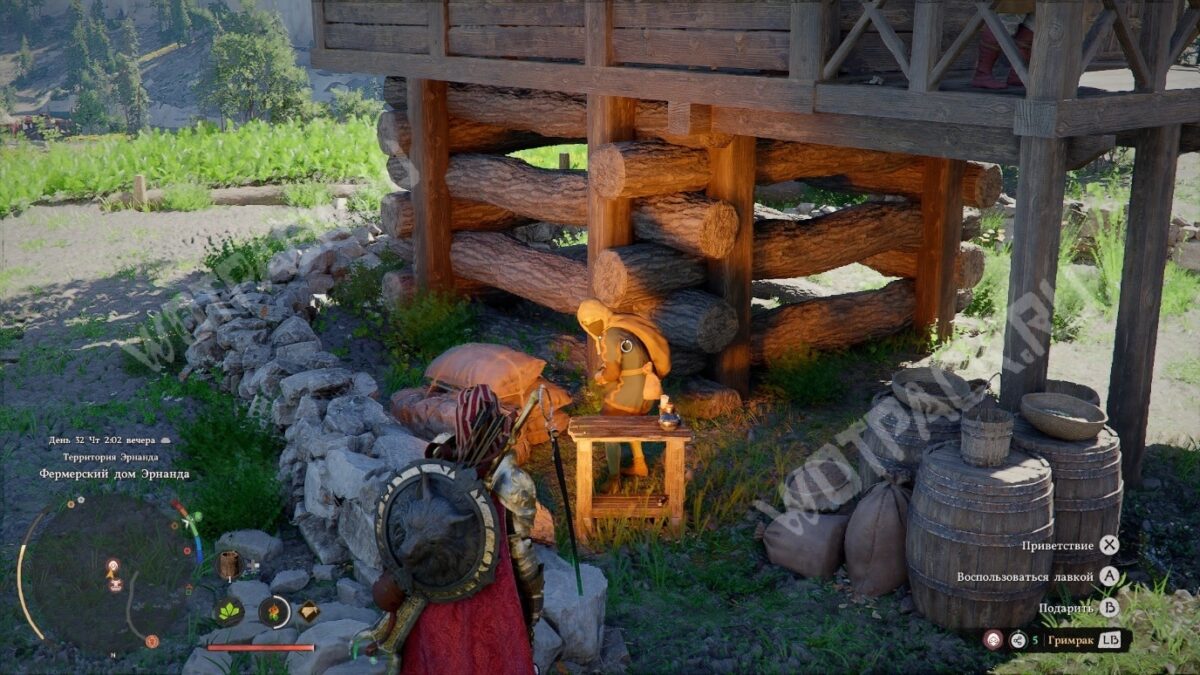 - Найдите маску — она выпадает с бандитов или покупается в подпольном магазине у ранчо Макрут за 10 медных монет. Перед совершением преступления не забудьте экипировать предмет.