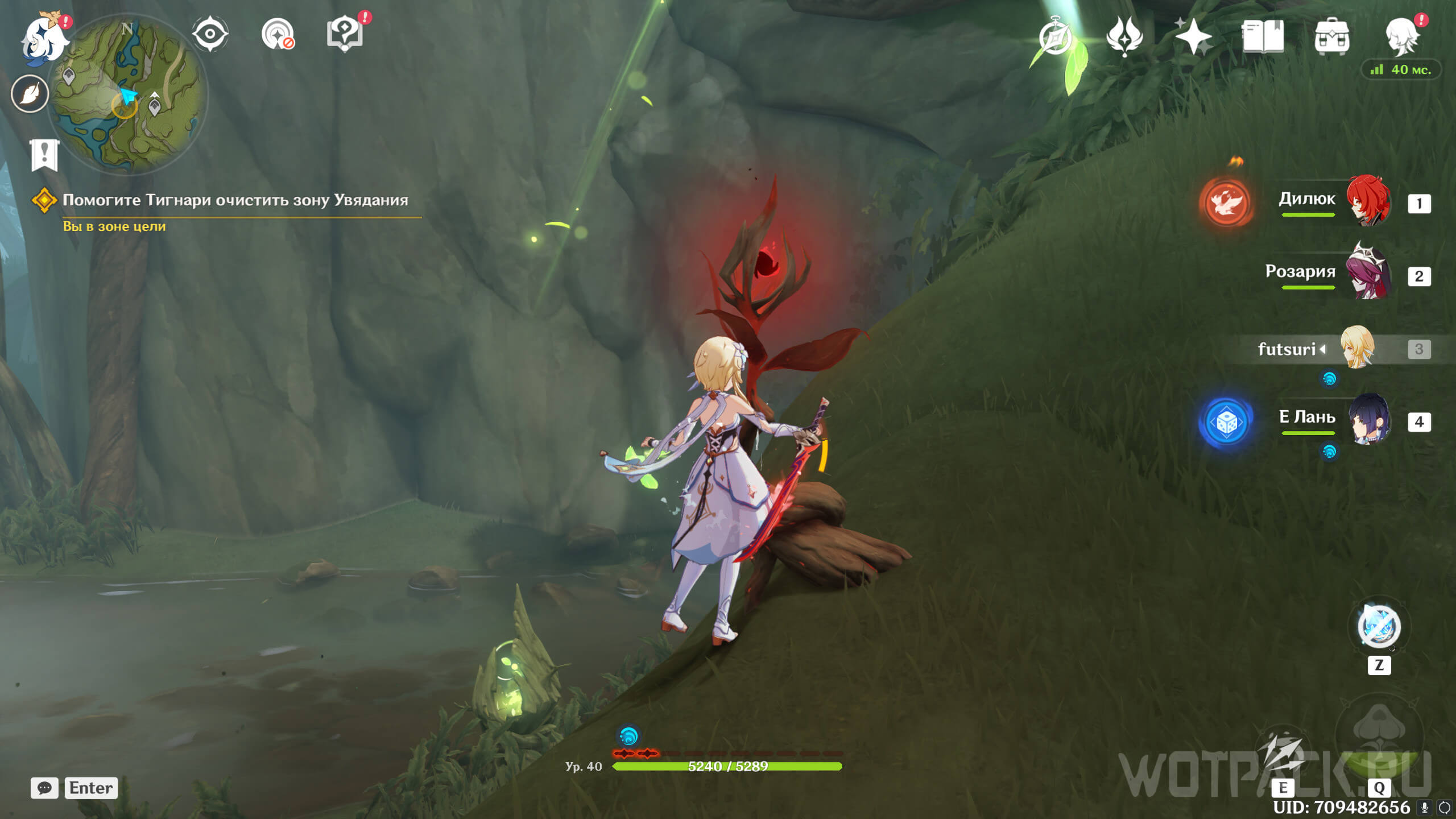 Войдя в Зону Увядания, сразу же найдите объект, похожий на засохший цветок с зеленым свечением в сердцевине. Подойдите к нему и призовите Дендрогранумы: именно они помогут очистить Зону Увядания.