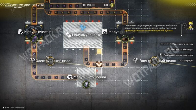 Для удобства строительства переключитесь на вид сверху и соедините устройства транспортировочными дорожками:
