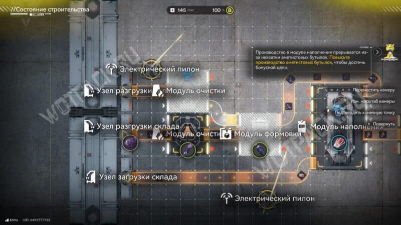 Чтобы расширить линию и достичь показателя 6 шт/мин, нужно ускорить поступление аметистовых бутылок в наполнитель: