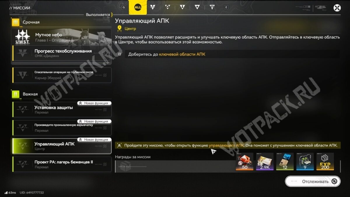 Бот-помощник для прокачки области АПК появляется у гранииц базы во время выполнения сюжетной цепочки «Мутное небо», сразу после завершения квеста «Перезапуск перераспределения резервов области I». Пообщайтесь с Фионой через Бейкер и возьмите у неё задание «Управляющий АПК».