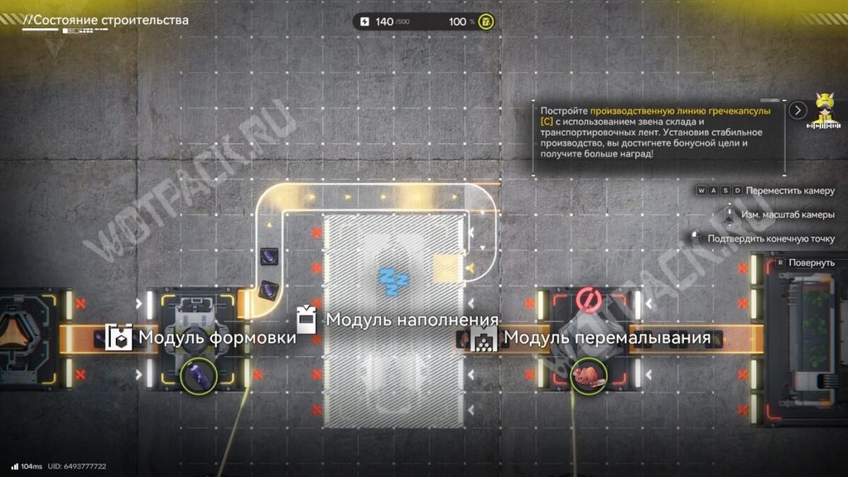 Используйте звено склада и модуль наполнения для производства гречекапсул