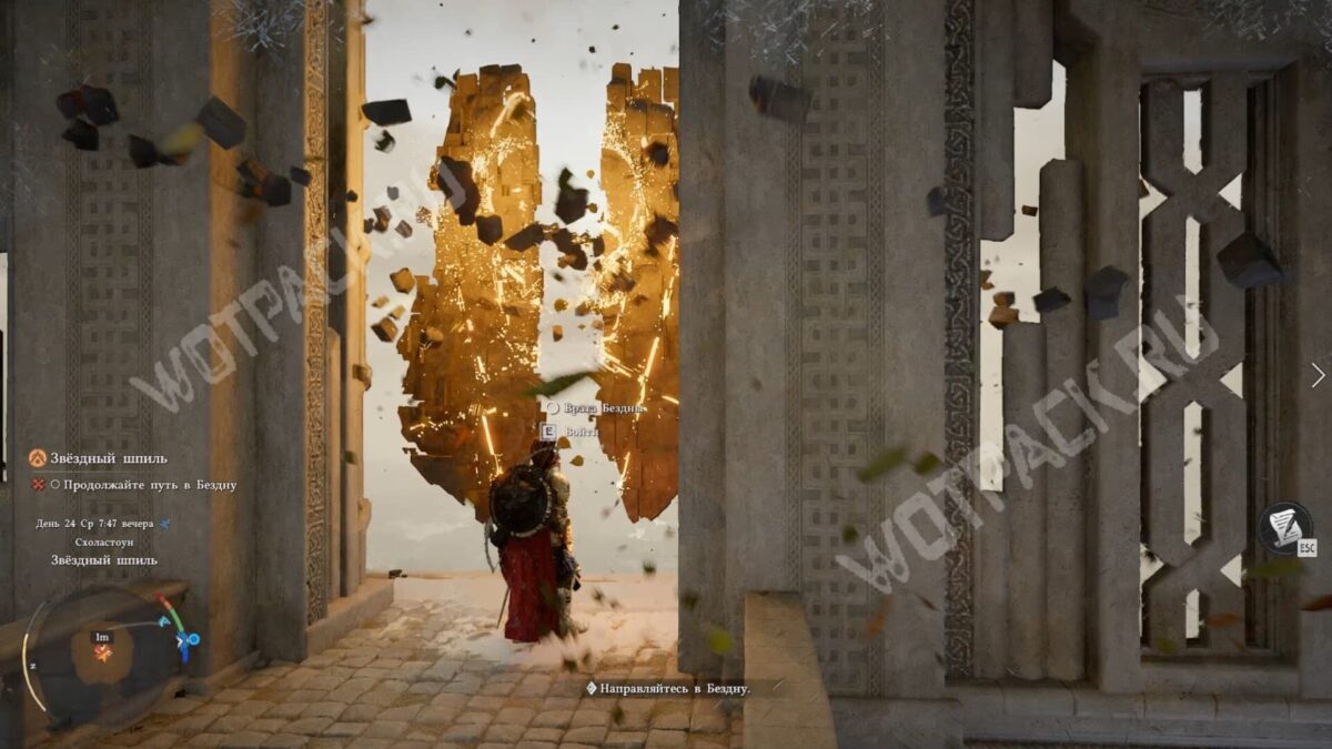 Когда пройдёте по лестницам, запустится кат-сцена. После неё войдите во врата и продолжайте путь в Бездну.